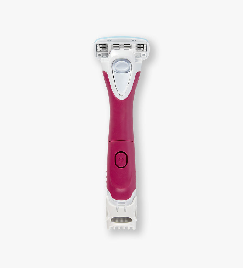 This compact 2-in-1 tool offers the ultimate in convenience—with 5 Curve-Sensing® blades that have unique skin guards to reduce irritation, plus a built-in waterproof trimmer that can be used in or out of the shower for convenient bikini maintenance.