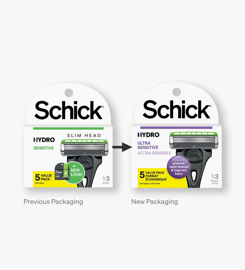 Previously known as Schick® Hydro® Slim Head Sensitive Razor Refills.